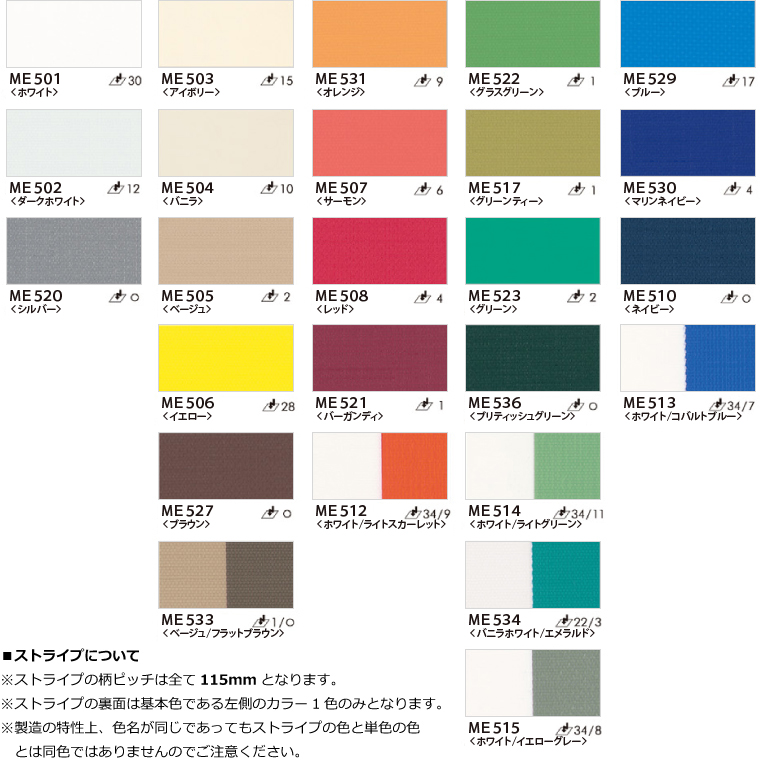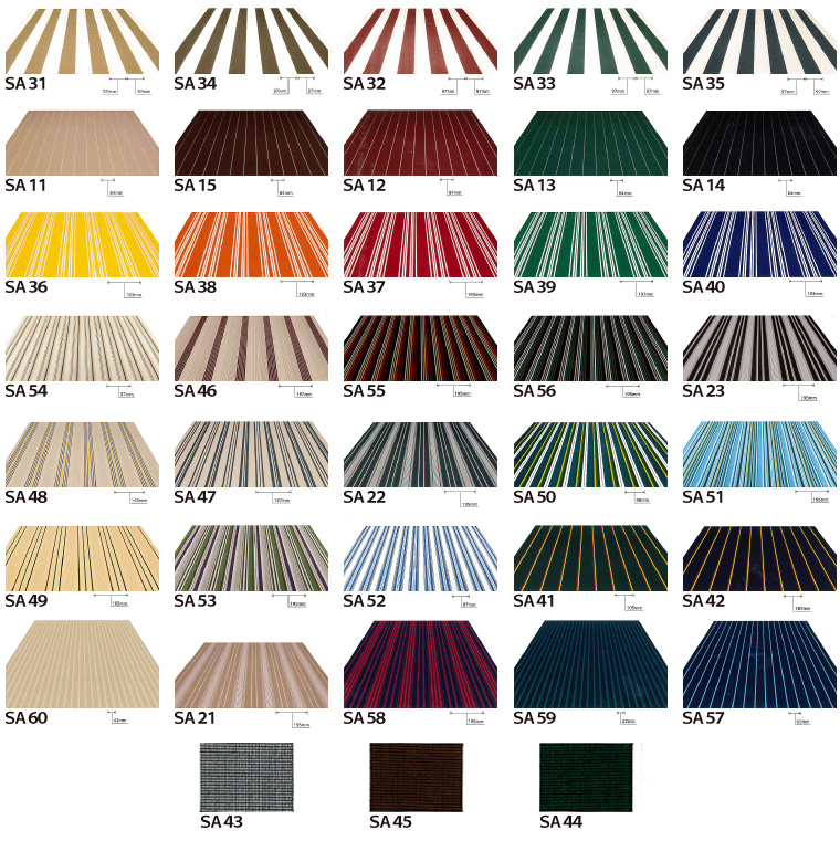 多様なニーズにお応えするメーカー標準生地「メロディー・キャンバス」。 汎用性のあるマットな質感のエンボス加工で、ストライプ柄も豊富に取り揃えています。