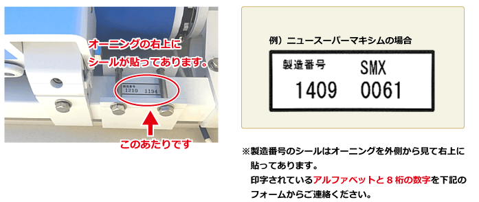 ※製造番号が不明の場合は、フォームに必要事項を入力してご連絡ください。